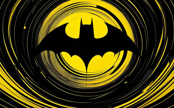 डाउनलोड 4k, Batman logo, minimalism, black yellow background, superheroes, creative, DC Comics, logo of Batman, fan art, Batman वॉलपेपर मुफ्त डाउनलोड वॉलपेपर